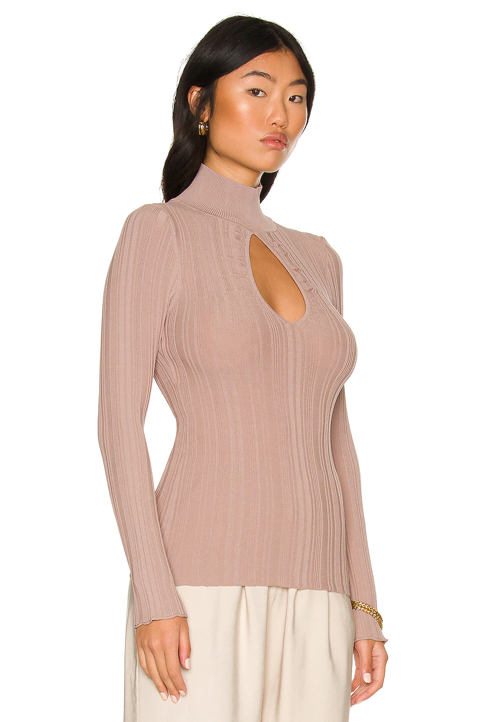 SKU: Cut-Out LCDE-WK177 Categories: Cut-Out, Sweaters & Knits Tags: Ash, Cut-outs, Raffung, Rollkragen, Taupefarbene Pullover & Strickwaren