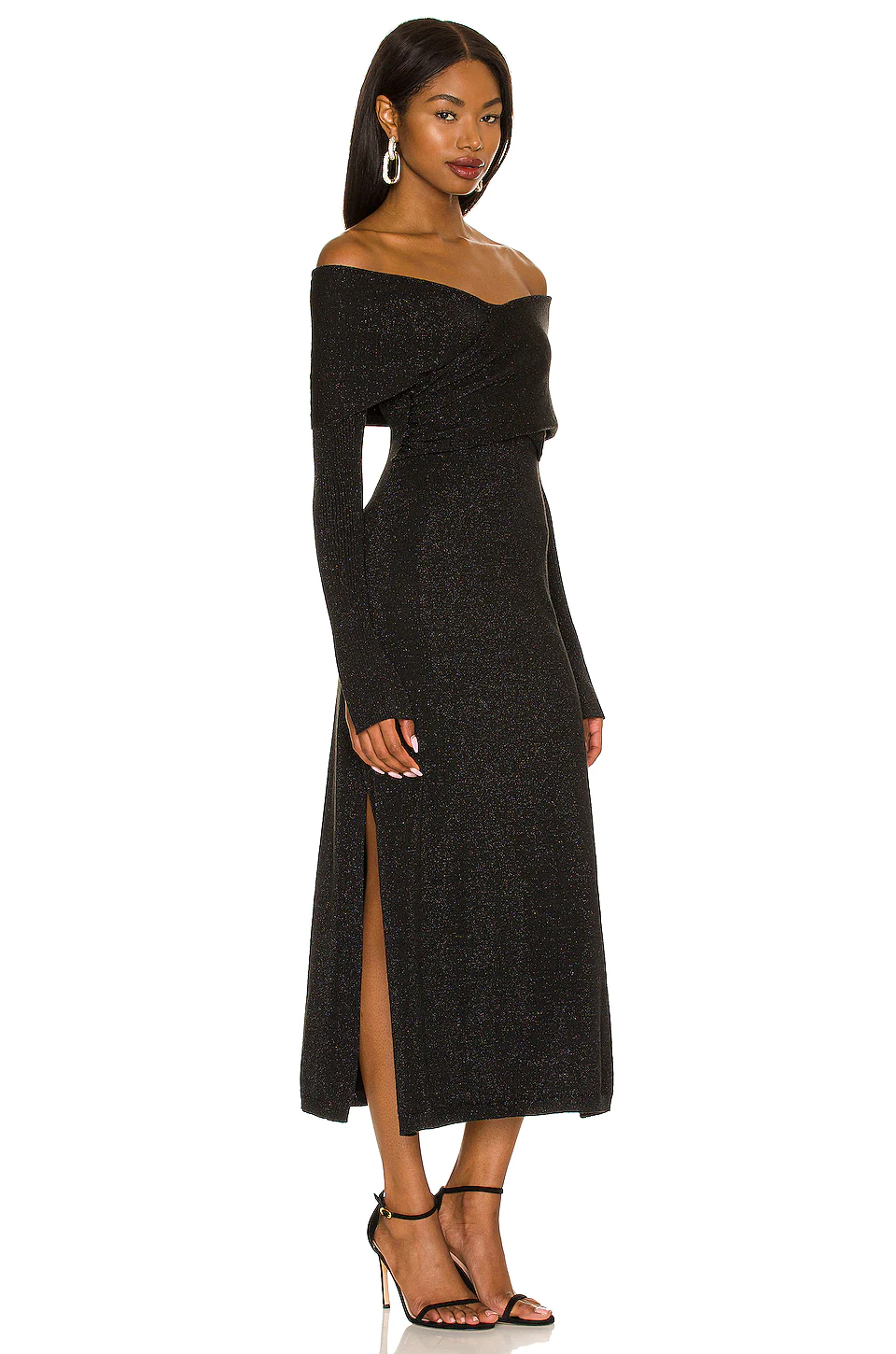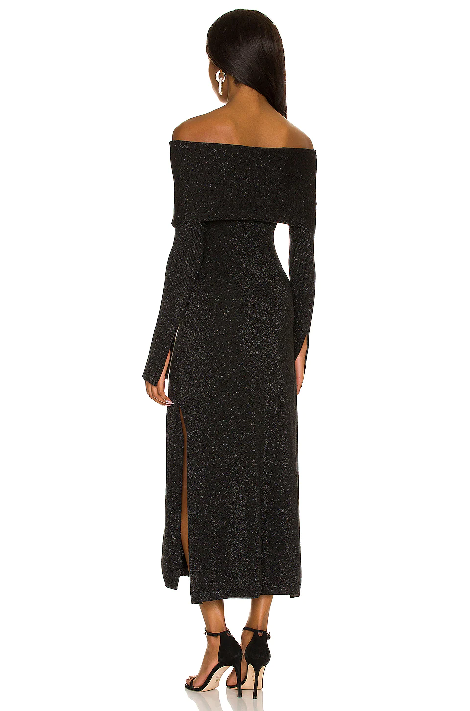 Dual side seam slit - Knit fabric with silver-tone lurex threading throughout