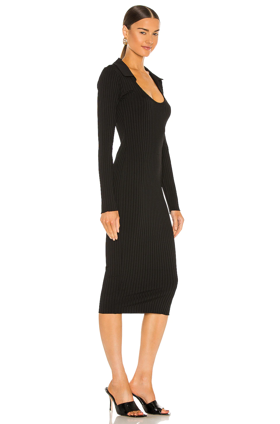 L’Academie Scoop Neck Midi Dress In Black