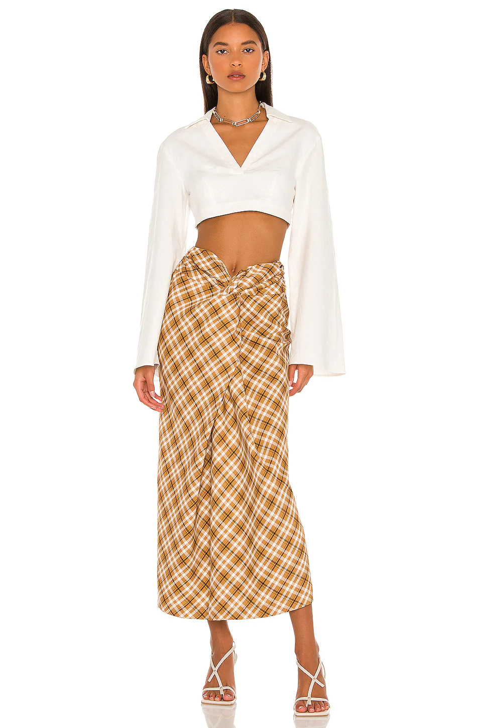 Be the first to review “L’Academie The Avril Midi Skirt In Ochre Multi” Cancel reply