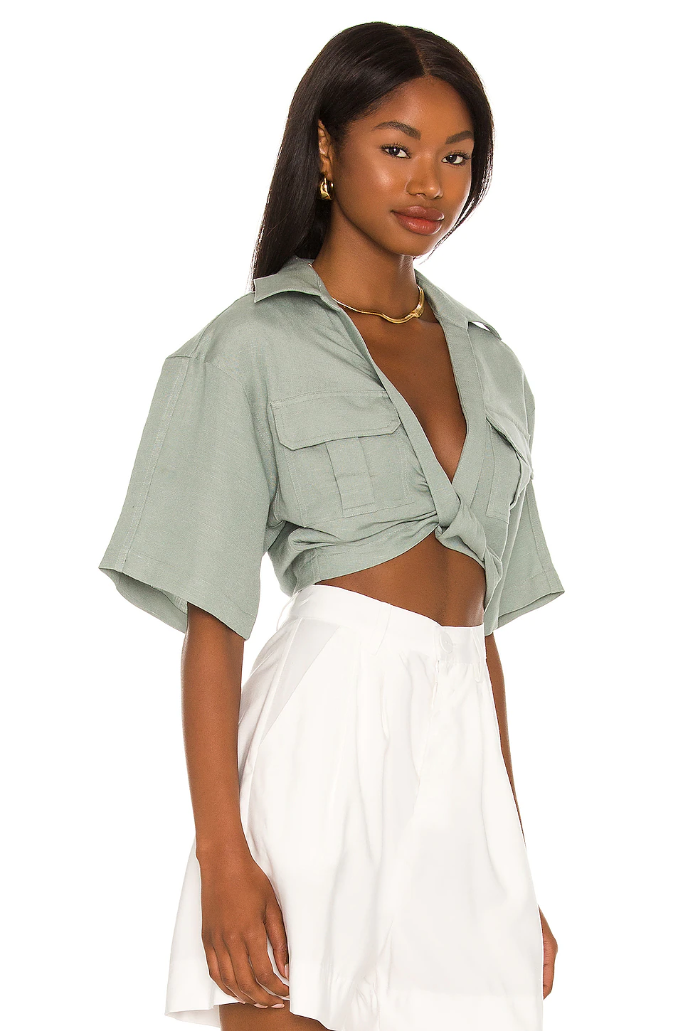 L’Academie The Chrisa Crop Blouse In Sage Green