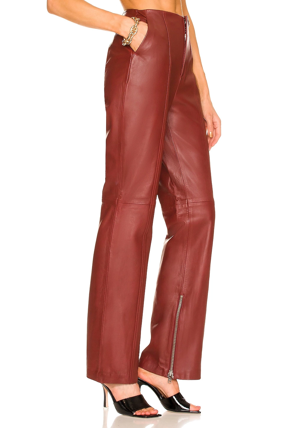 L’Academie The Kira Leather Pant In Burgundy Red