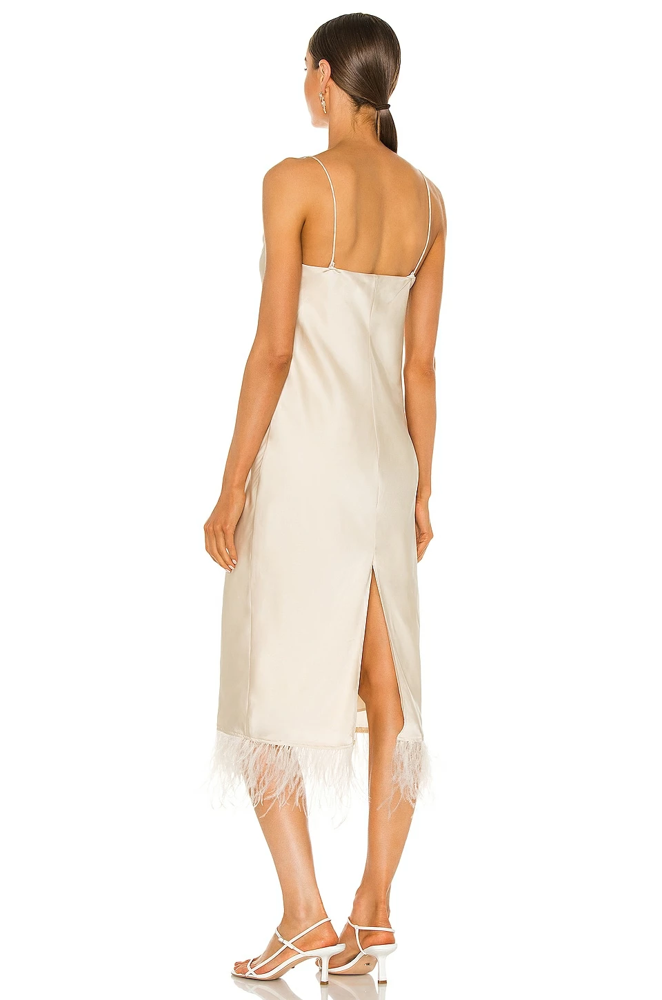 SKU: Midi LCDE-WD501 Categories: Dresses, Midi Tags: Cocktailkleider, Elfenbeinfarbene Kleider, Federn, Ivory, Midikleider, Satin, Trägerkleider Kleider