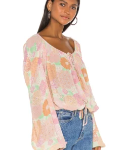 L’Academie The Alayna Top In Peach Floral